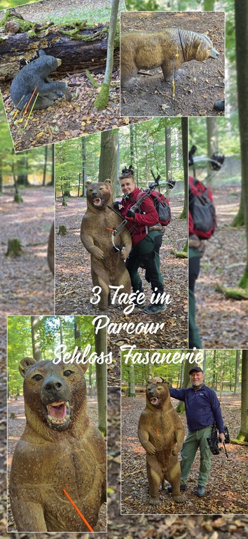 Wie schon im August 2025 erwähnt, sind wir über meinen Geburtstag nach Fulda gefahren, um bei den Bogenschützen der Rhön einen Besuch zu machen. Der Bogenparcour im Schlosspark der Fasanerie ist ein Traum. Im privaten Wildpark vom Schloss haben wir Bogenschützen die Möglichkeit uns in der Natur auszutoben. In nur wenigen Wort ausgedrückt, es ist für jeden Bogenschützen herrlich dort zu schießen. Die verschiedenen Parcoure sind abwechslungsreich, und die gestellten Tiergruppen und Einzeltiere sind hochwertig. Das Gelände ist eine wunderschöne Mischung aus Wald, Wiesen und Seenlandschaften. Die Ziele stellen jagdliche Szenen dar, die auch uns Compoundschützen vor die ein oder andere Herausforderung stellen. Jedes Ziel wird mit einem ausführlichen Schild beschrieben, wo auf einem Foto ersichtlich ist, wo genau die Killzonen sind. Auch der Hinweis auf die Tier-Gruppe darf nicht fehlen. Hieraus kann man sich dann ungefähr denken, wie weit das Ziel entfernt ist. Mit dem Geschäftsführer Dieter Jung haben wir viele nette und informative Gespräche geführt, und uns bestens unterhalten. Wir sind im Mai auf jeden Fall wieder in Fulda, und haben uns bereits zum fürstlichen Bogensportturnier angemeldet. Dieter hat uns sogar die Möglichkeit gegeben und uns eingeladen, als Gastschützen beim BHL am 10. 05.26 teilzunehmen. Da sagen wir natürlich nicht nein, und freuen uns jetzt schon in der schönen Fasanerie unsere Zielsicherheit zu beweisen.