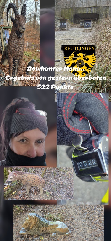 Beim PSV in Reutlingen sind wir immer gerne so mal auf die Schnelle. Zum einen ist der Parcour gleich um die Ecke, und der Verein hat sich ein paar Neuerungen einfallen lassen. Aufgrund vom Bowhunter-Turnier, sind an verschiedenen Stationen neue Tier hinzugekommen. Schön ist, dass sie die Tiere nicht abgebaut haben, sondern haben stehen lassen. Der Wolf schleicht sich an die Schafe ran, die Ratten haben sich im Stroh ein Nest gebaut, der kleinere Steinbock steht am Berg, und zwei kleine Turmfalken sind kurz vor dem Abflug. Einen zweiten Geier gibt es nun auch. Wer Lust hat kurz den Bogen raus zu holen, ist Reutlingen genau der richtige Ort.